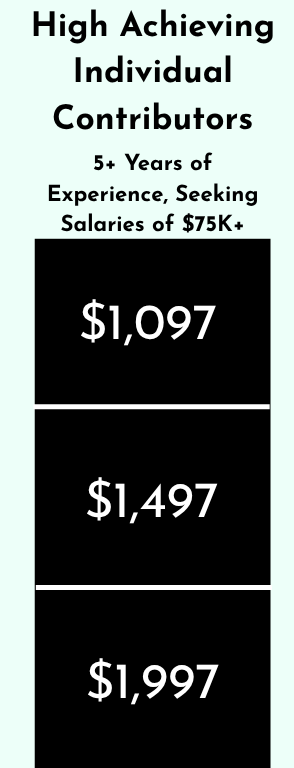 I work with ambitious professionals 1:1 to create a powerful personal brand that gets you noticed—and hired, usually in 60 days or less.