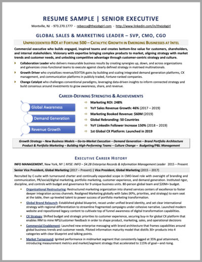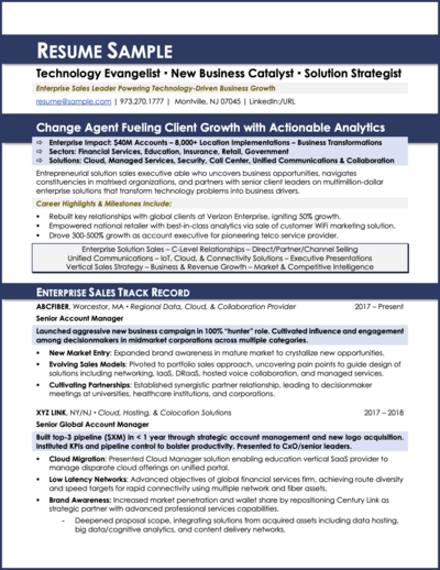 A top-performing technology sales leader, this client needed my help to transform his lackluster resume into a standout personal branding document. He landed multiple interviews within weeks of our work together.